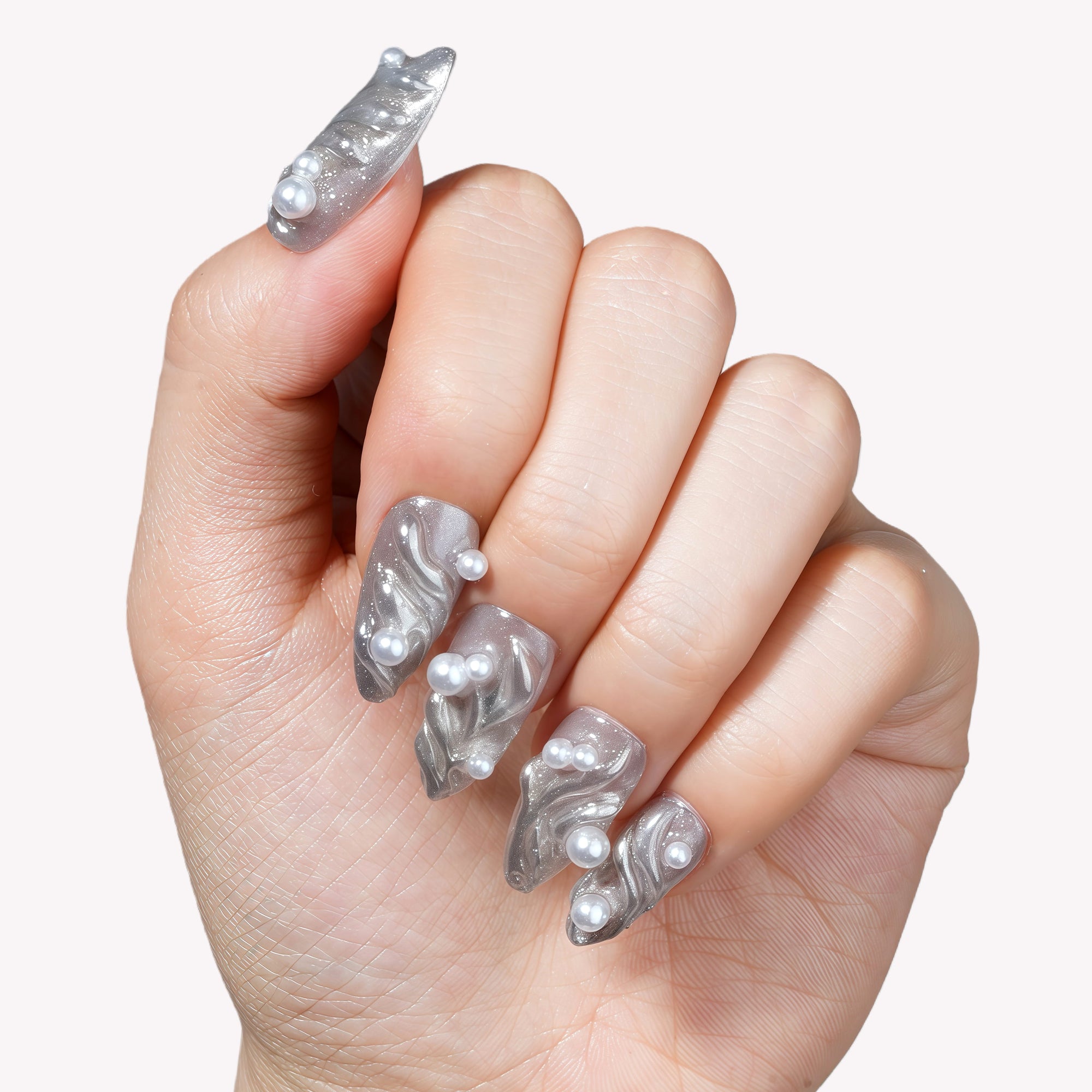 Pearl Cascade Handmade Press On Nails