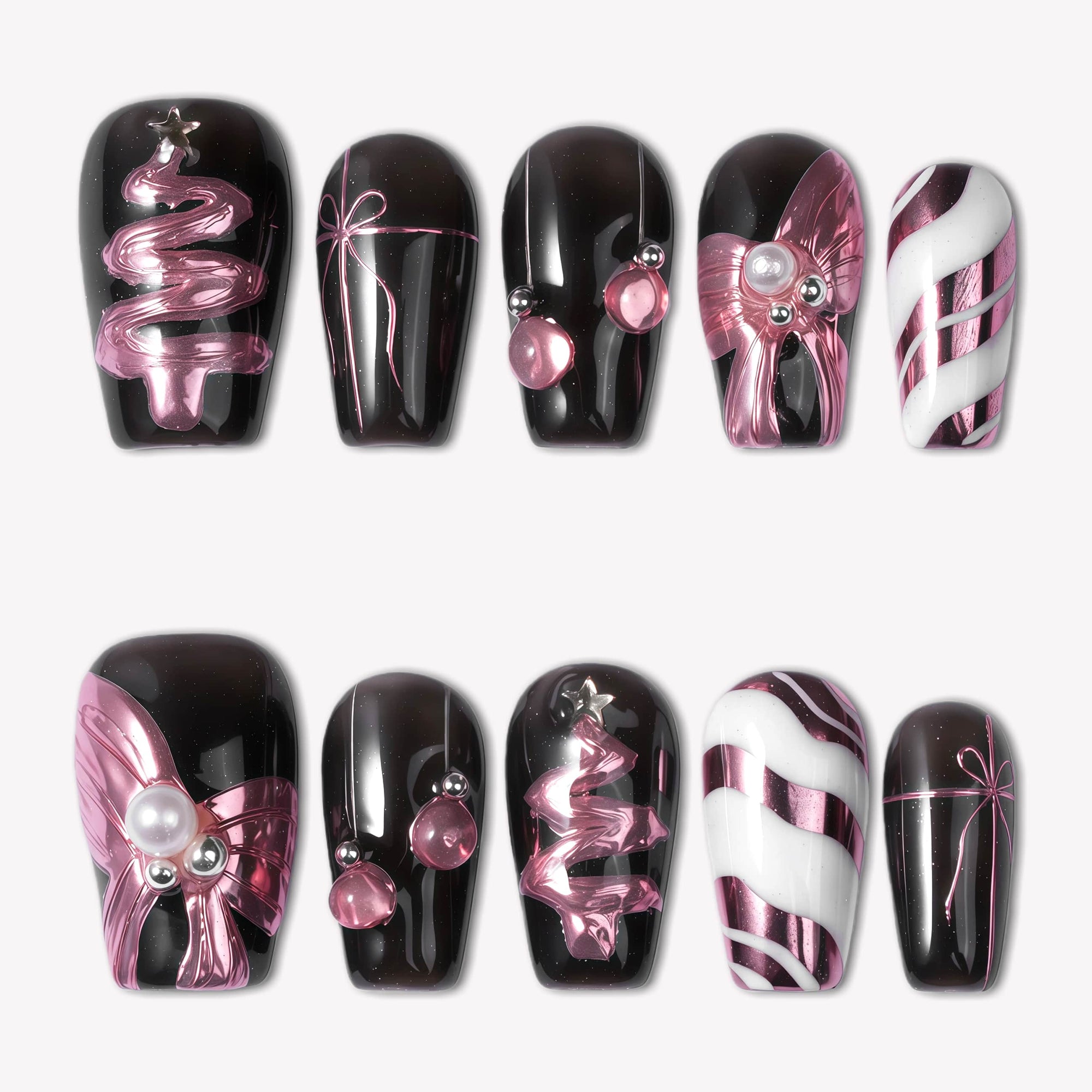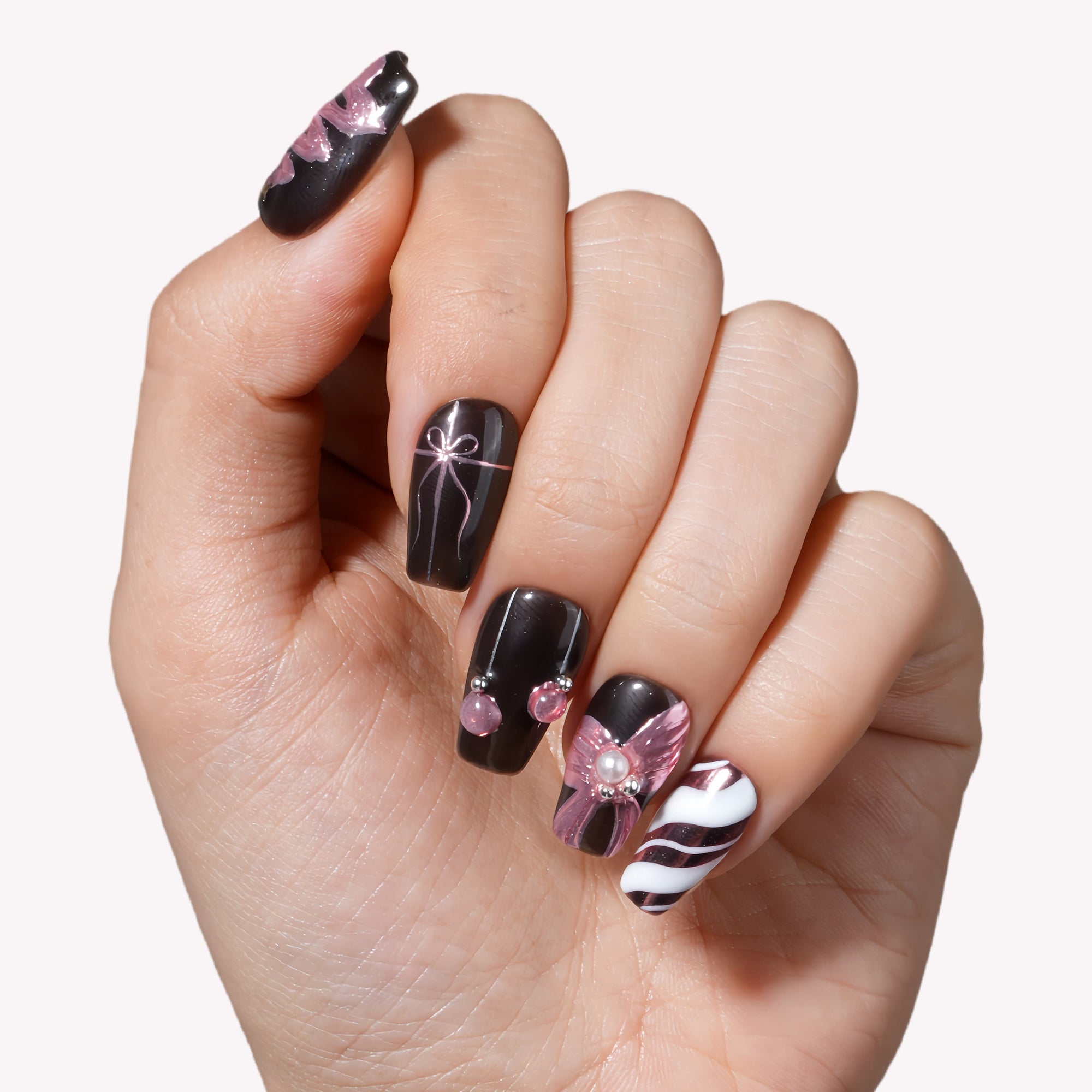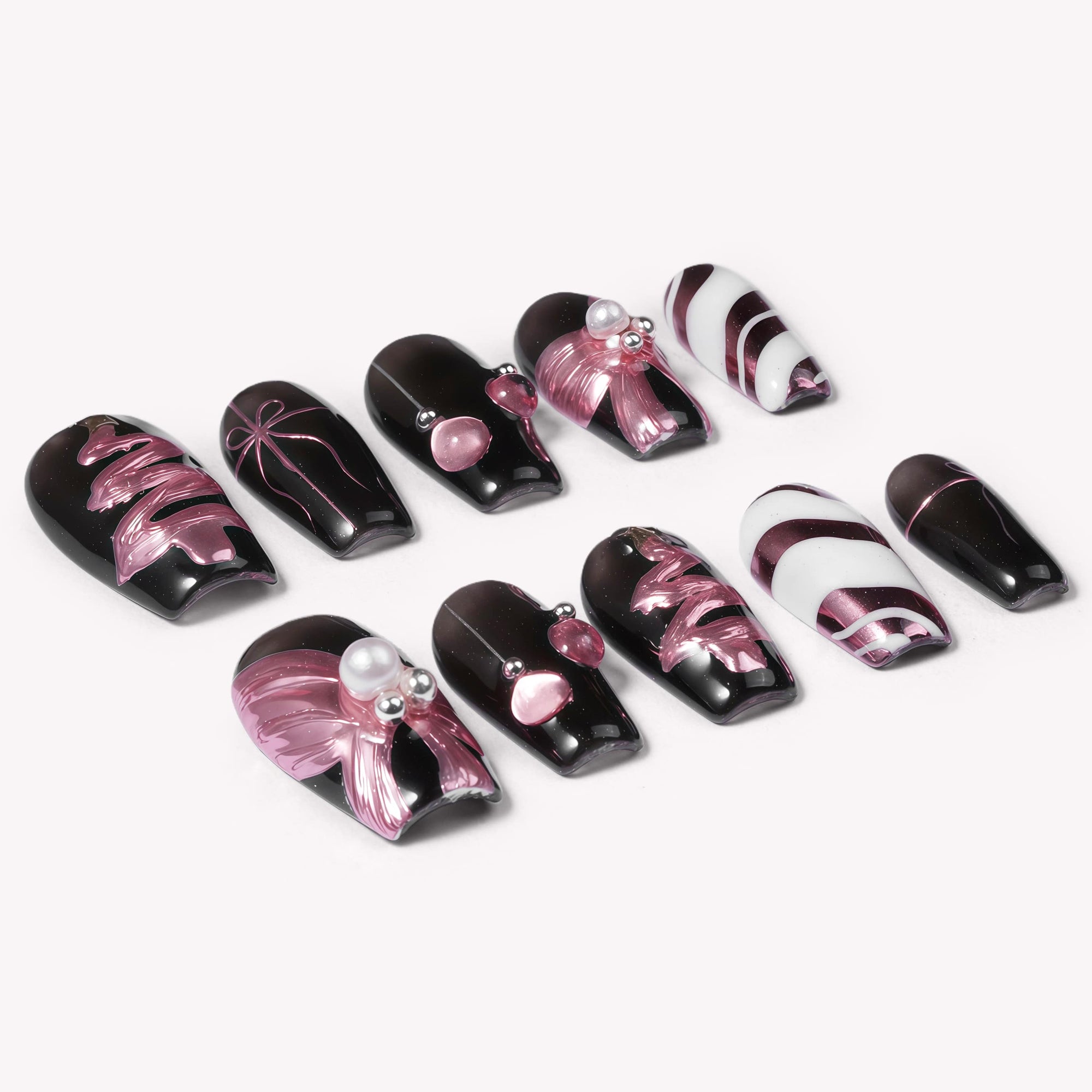 Mademoiselle Bow Handmade Press On Nails
