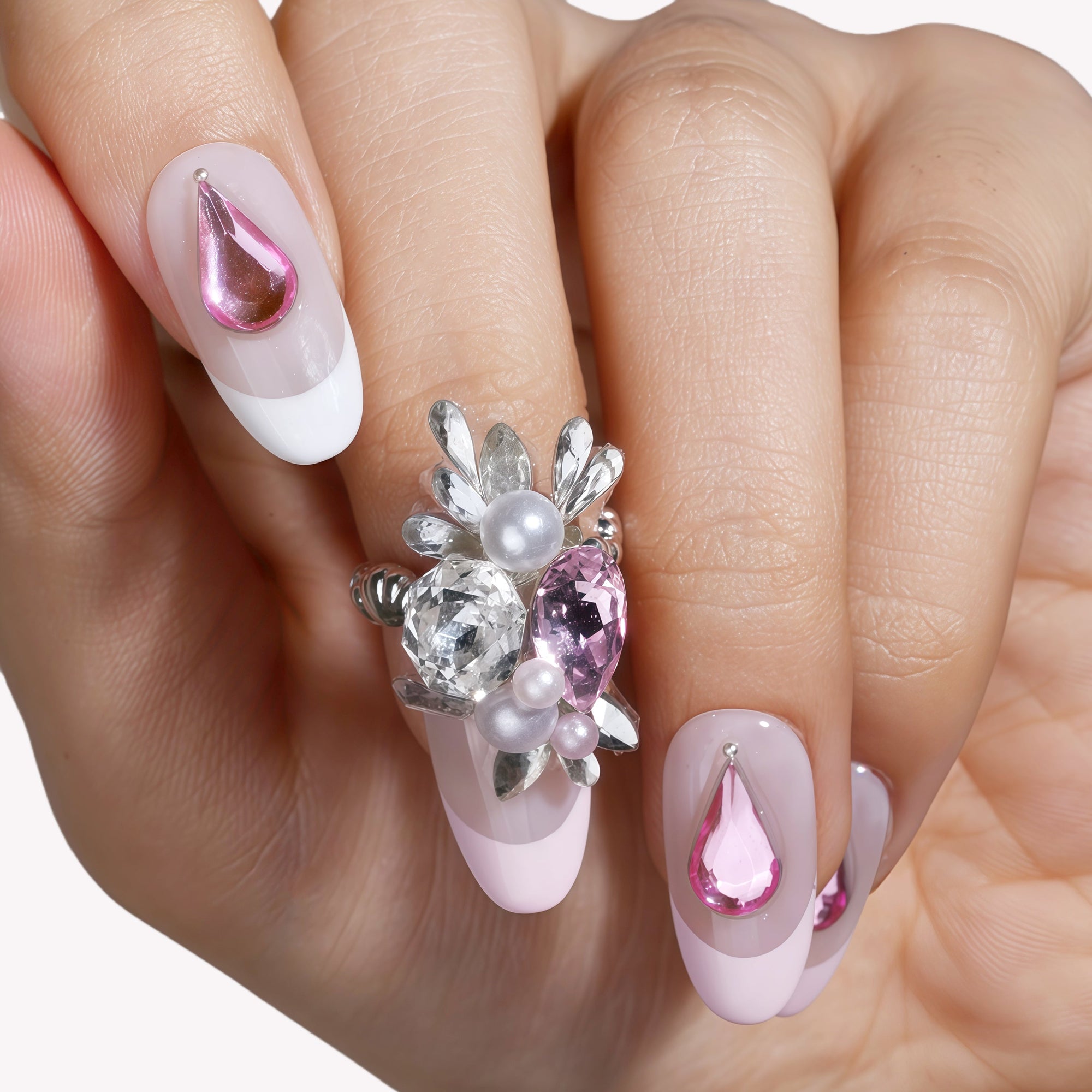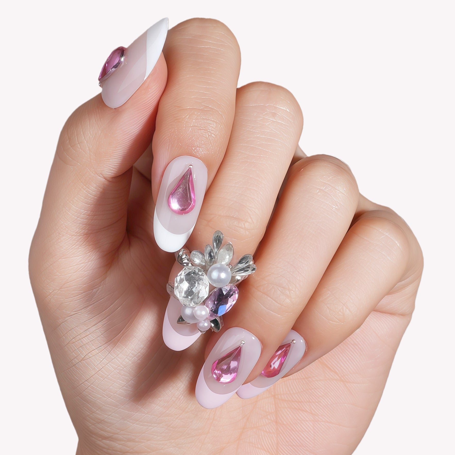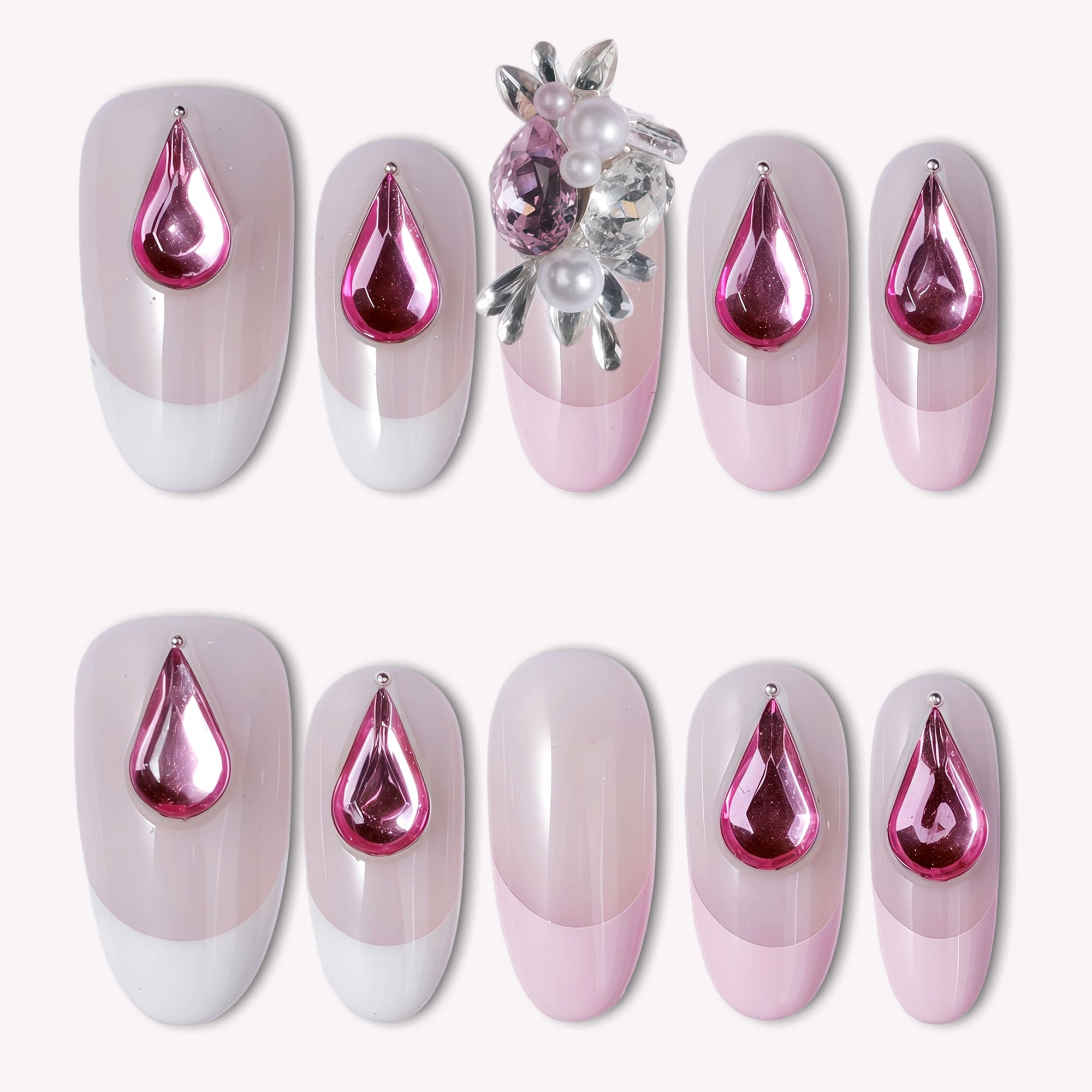 Rosé Teardrop Handmade Press On Nails