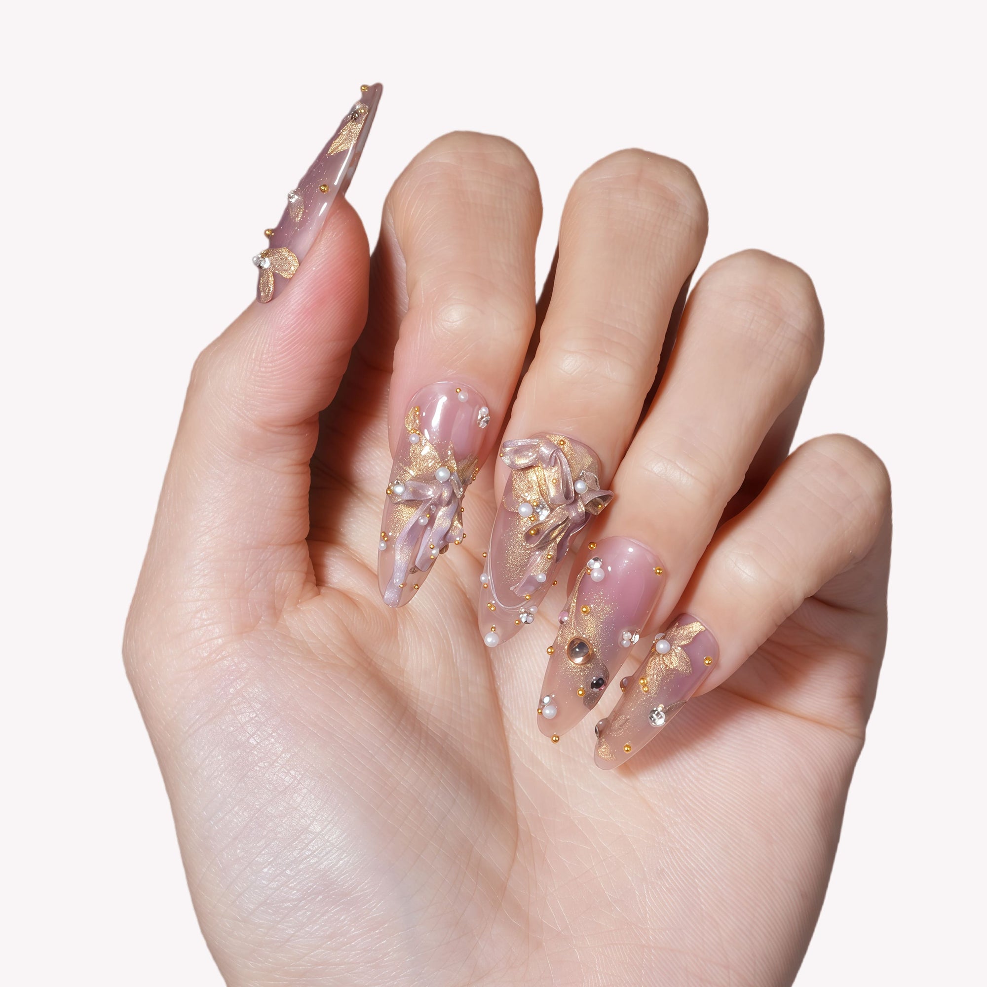 Golden Pearl Harmony Handmade Press On Nails