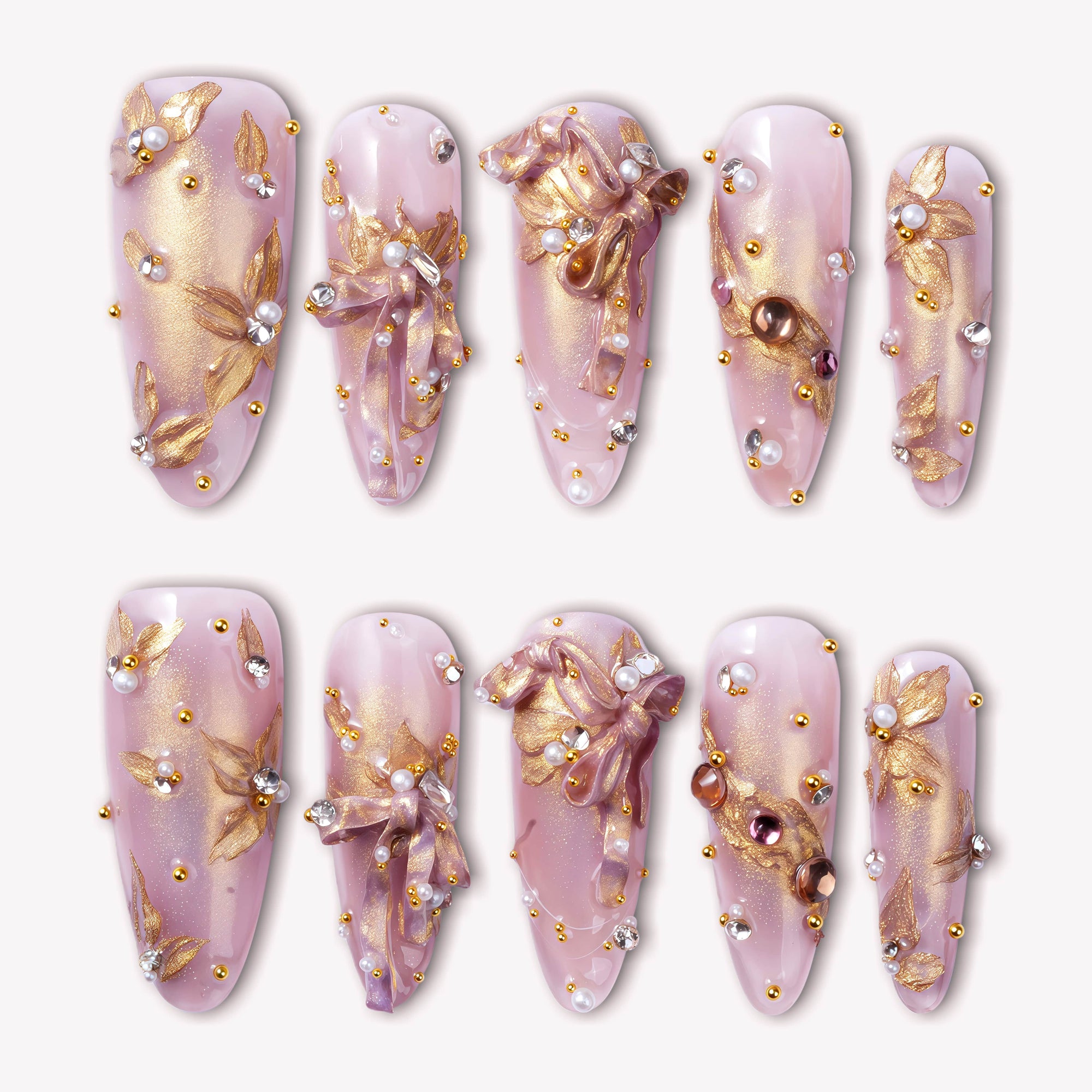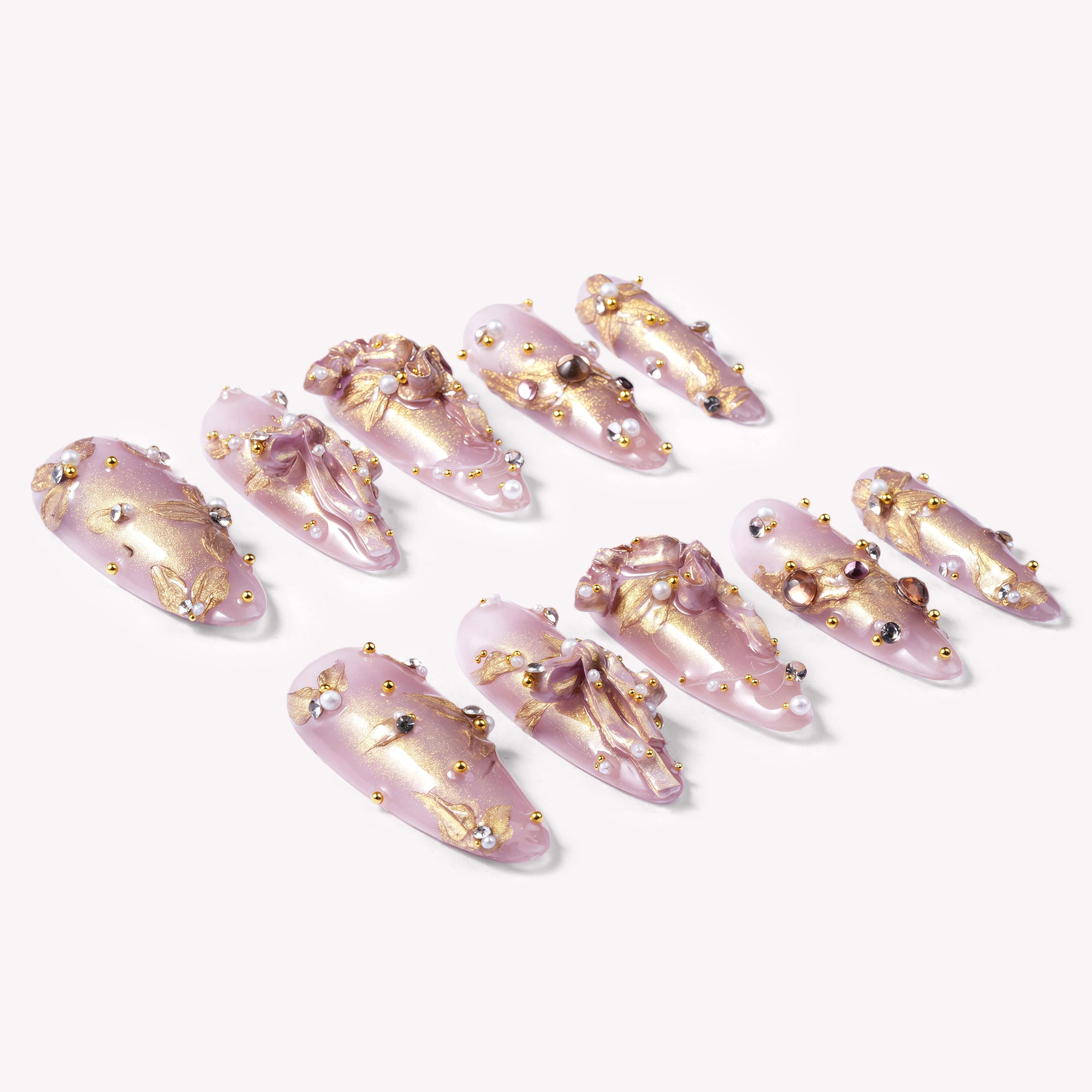 Gilded Petal Waltz Handmade Press On Nails