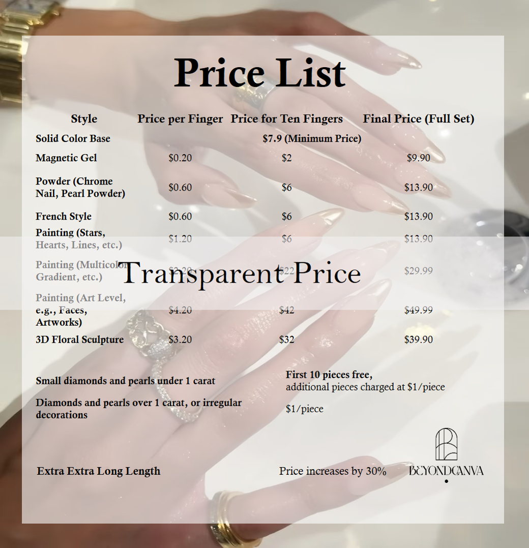 Heads up! Enjoy significant discounts on our custom nail designs.